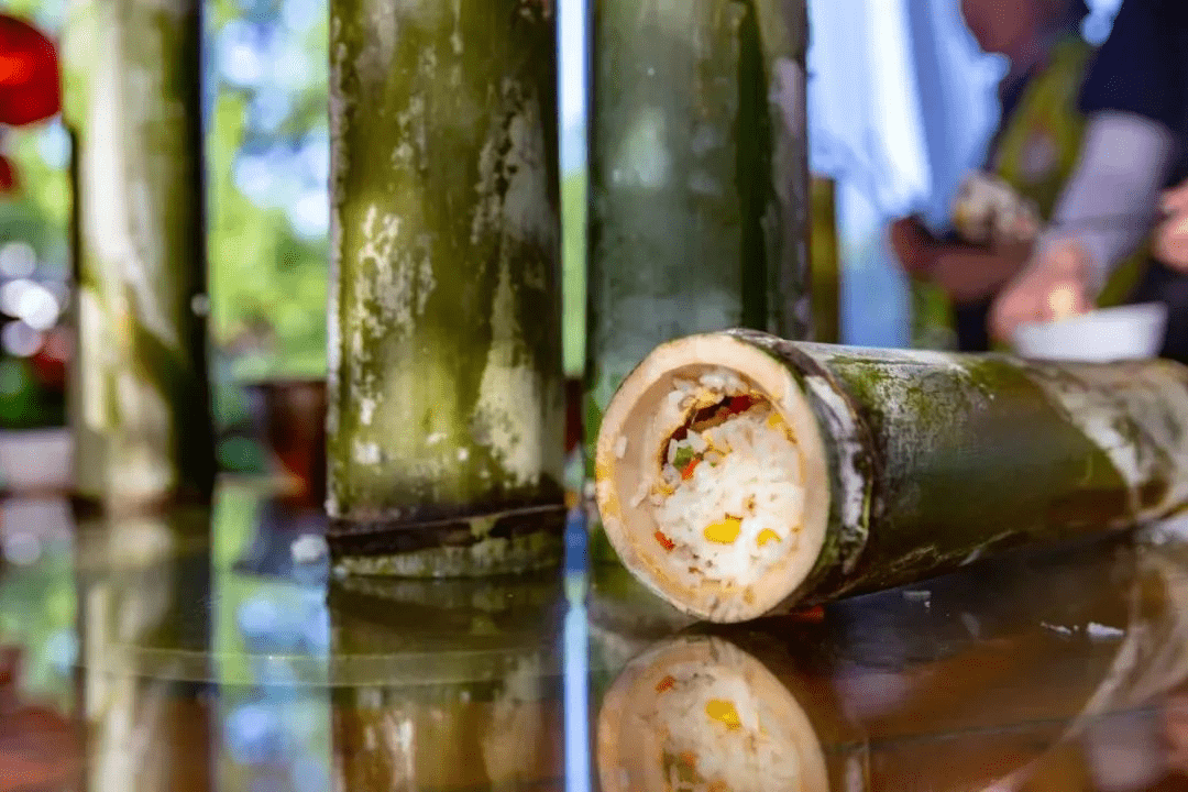 【品竹筒饭】竹筒饭是傣族食品,是具有深厚文化底蕴的绿色食品和生态食品,又是一种珍贵的民族文化遗产。青竹做出来的竹筒菜饭,真是纯天然的香!