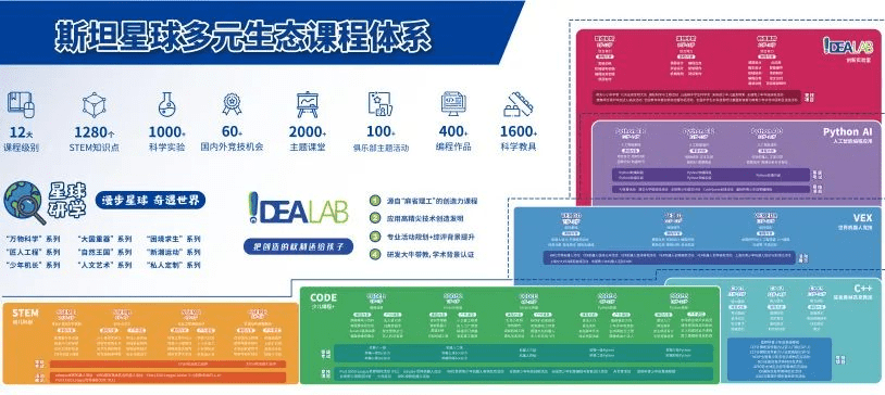 经过2021年下半年的整体升级和之后的持续打磨后,目前斯坦星球打造了一套覆盖3-16岁孩子的多元生态STEM课程体系,特别针对三年级以上学员的特长和兴趣爱好提供专门的定制方案,兼顾标准化体系和个性化的发展路径。与此同时,从 2021 年起,斯坦星球开始增加星球研学的业务板块,并且注册了国际旅行社,形成室内课堂和户外课堂的有机联动。今年上半年,斯坦星球成为了联合国训练研究所湖北国际培训中心(Unitar)的课程合作单位。